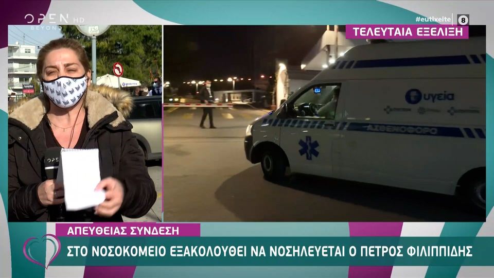 | ελλαδα | iefimerida.gr | πέτρος φιλιππίδης, νοσοκομείο. Ήταν σχεδόν δεδομένο πως η περιπέτεια στην οποία έχει βρεθεί μπλεγμένος ο 57χρονος πέτρος φιλιππίδης θα διάβρωνε τη σχέση του με τη γυναίκα του.… Στο νοσοκομείο εισήχθη ο πέτρος φιλιππίδης χθες, τετάρτη 3 φεβρουαρίου, μετά από λιποθυμικά επεισόδια και με συμπτώματα εγκεφαλικού, όπως ανακοίνωσε η οικογένειά του. Γιατί δεν απαντάει η νίνου; Νέα σοκαριστική καταγγελία για τον πέτρο φιλιππίδη μια ακόμη καταγγελία σεξουαλικής παρενόχλησης έρχεται στο φως της δημοσιότητας και αφορά σε πολύ γνωστό ηθοποιό